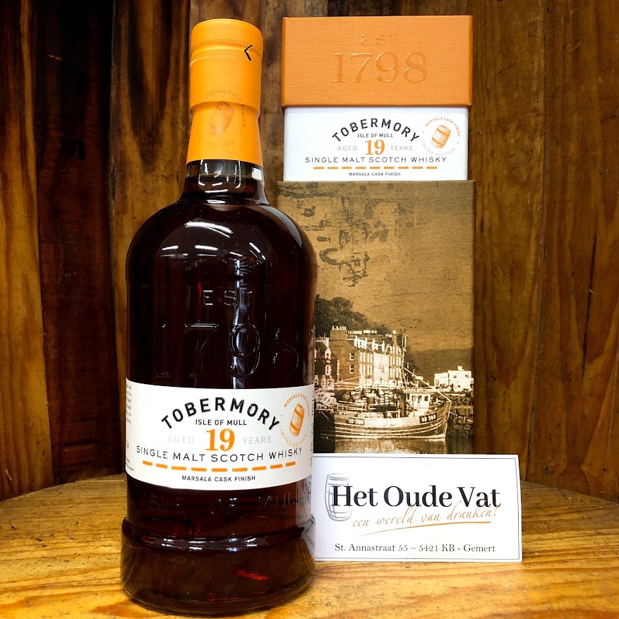 19 jaar oude Single Malt van Tobermory. Gedistilleerd in 1999 en gebotteld in 2019. Een finish rijping gehad in Marsala Cask, slechts 1134 flessen uitgebracht. Deze fles is niet aanwezig in de winkel. Bij interesse kunt u contact opnemen via de mail naar manouk@hetoudevat.nl